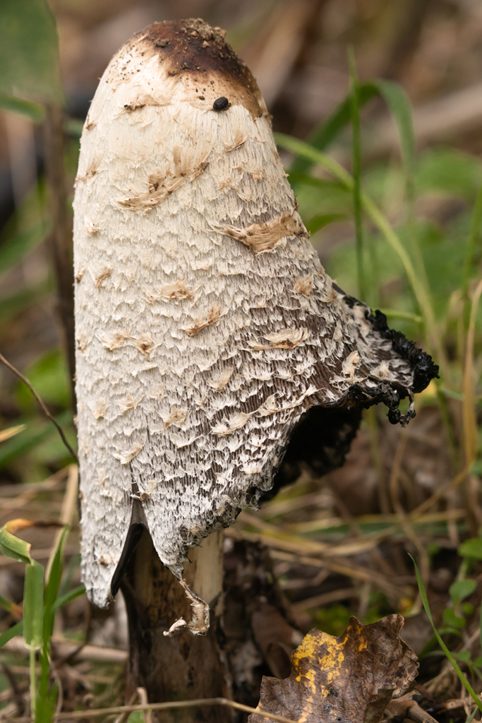 In de jeugd is de 5-15 cm hoge hoed van de geschubde inktzwam ei- tot klokvormig, wit met een lichtbruin, glad centrum en bedekt met grote, omgekrulde schubben. De hoed scheurt later vanaf de rand in en vervloeit tot zwart. De holle steel is 10-20 cm hoog met een lage, beweegbare, vrij snel afvallende ring. De lamellen zijn wit in de jeugd, later vanaf de rand verkleurend via roze naar zwart.