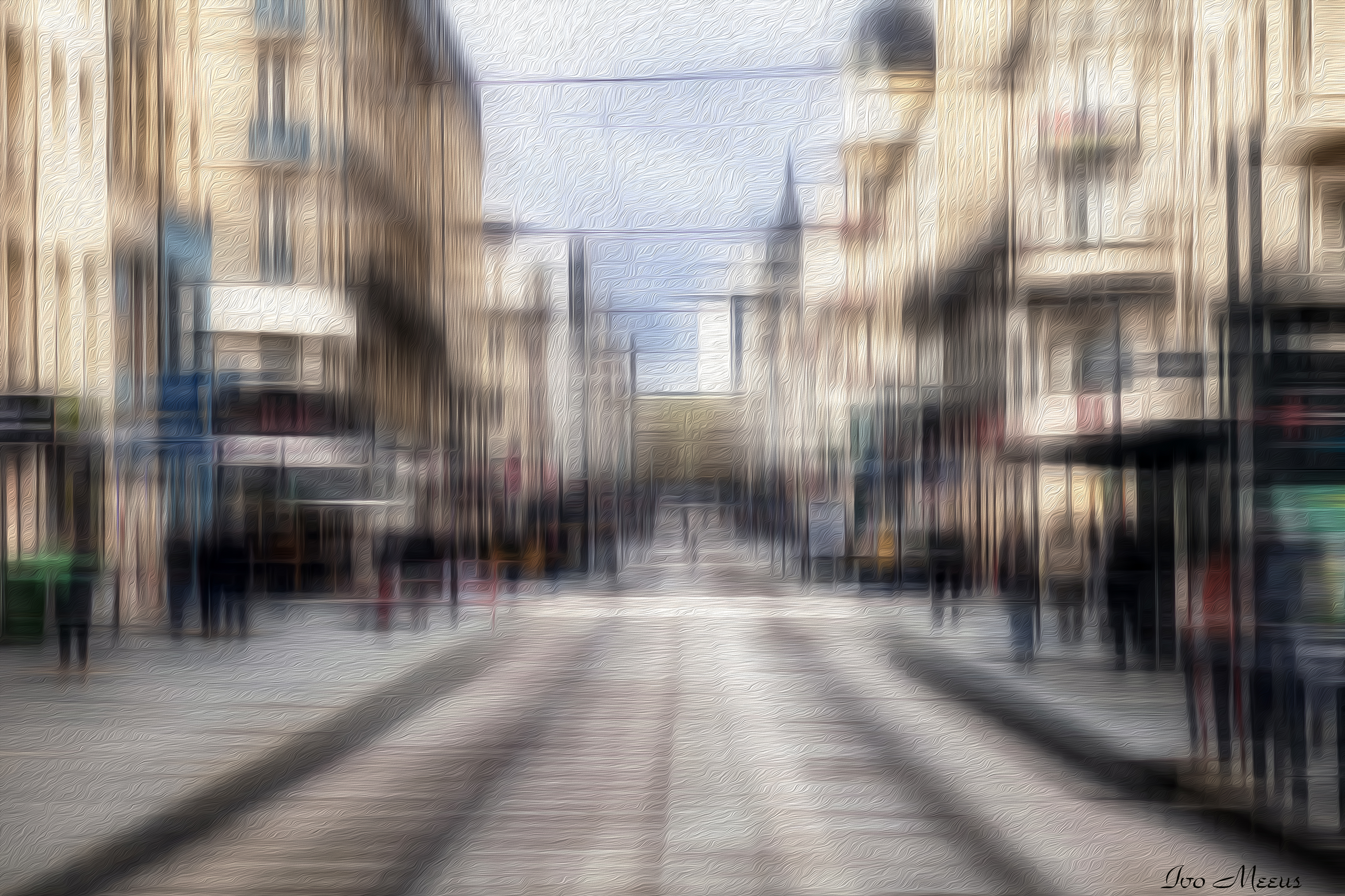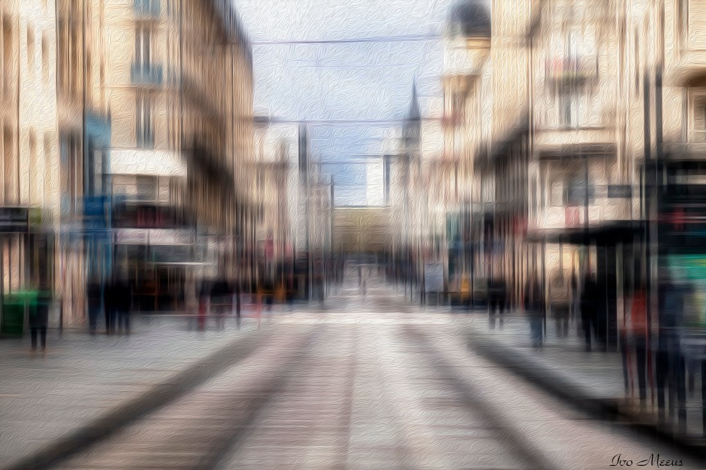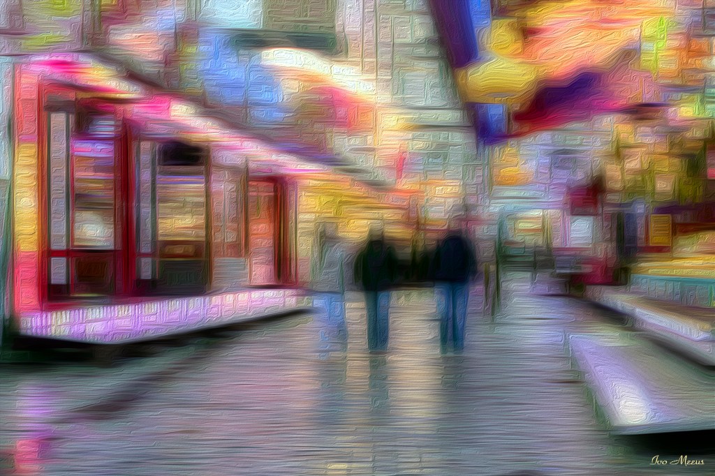 Hier wou ik een impressionistische weergave maken van mijn foto op de kermis te Leuven.